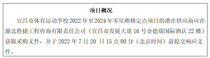 | 宜昌市体育运动学校2022年至2024年零星维修定点项目竞争性谈判谈判公告 |