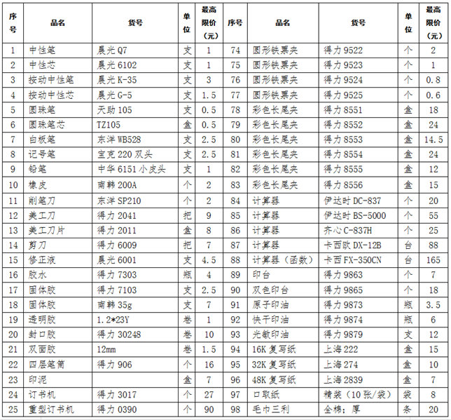 为保障正常办公需要,为教学、训练各项工作提供方便快捷高效服务,采用询价方式采购办公用品定点供货商。请符合相应资格条件的公司参加询价。 一、采购项目名称:宜昌市体校办公用品供货商询价采购 二、项目内容: 报 价 表