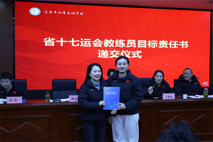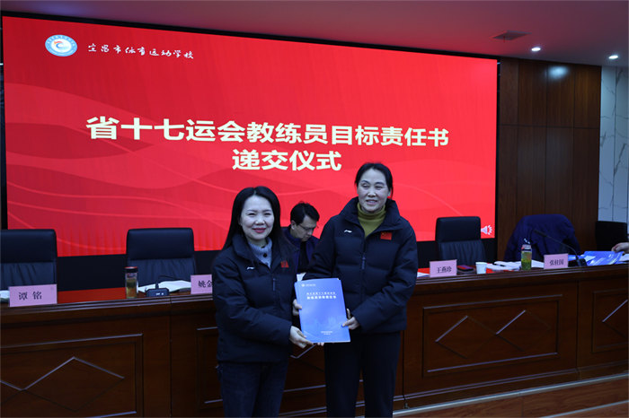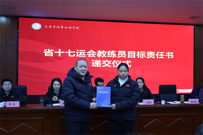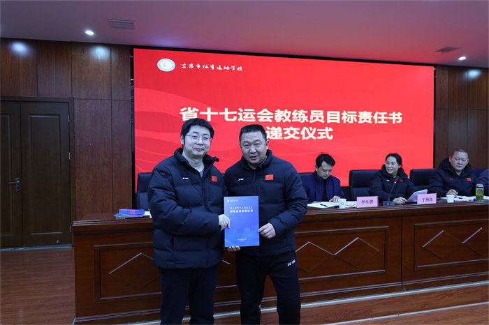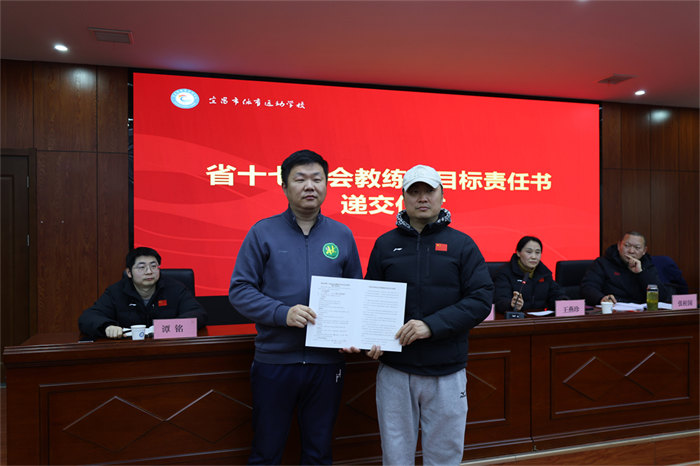 随后举行的责任书递交仪式将会议推向高潮。网球、游泳、篮球、举重等15个项目的28位教练员签订《省十七运会目标责任书》,明确了各项目的金牌目标、奖牌任务、人才培养指标,更细化了训练保障、赛风赛纪、反兴奋剂等全链条责任要求。