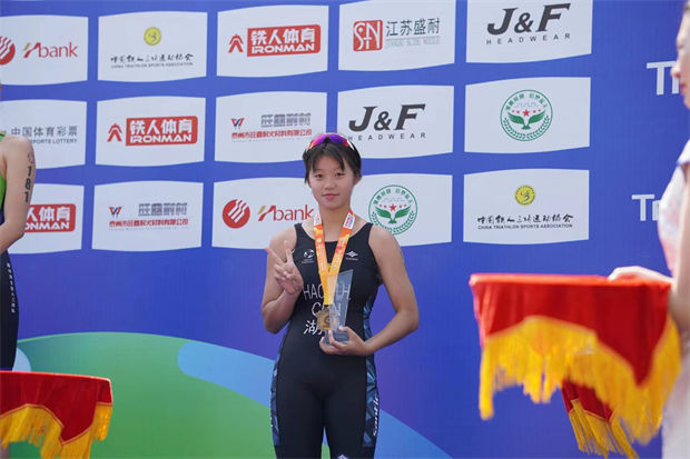祝贺我校输送游泳运动员郝梦涵参加2023年泰州全国铁人三项U系列冠军第三