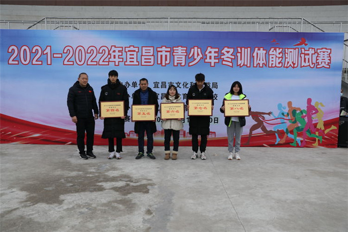 2022年2月20日,由宜昌市文化和旅游局主办,宜昌市体育运动学校承办、宜昌市体育中心协办的2022 年全市冬训体能测试赛在宜昌市体育中心田径场圆满举行。来自12个县市区代表队377名运动员参加了此次测试赛。比赛设16-17 岁男子、女子组(100 米、立定跳远、后抛实心 球、女 800 米/男 1500 米);14-15 岁男子、女子组(100 米、800 米、立定跳远、前抛实心球); 12-13 岁男子、女子组(100 米、400 米、垒球、 1 分钟单摇跳绳); 11 岁及以下男子、女子组(60 米、200 米、1 分钟单摇跳绳、1 分钟仰卧起坐)四个组别。