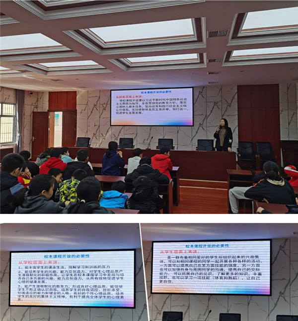 教务科长苏家梅就校本课程的必要性分别从国家层面、学校层面、个人层面进行了宣讲,隆重介绍了七门校本课程的老师,并对上课时间和选课规则进行了说明。