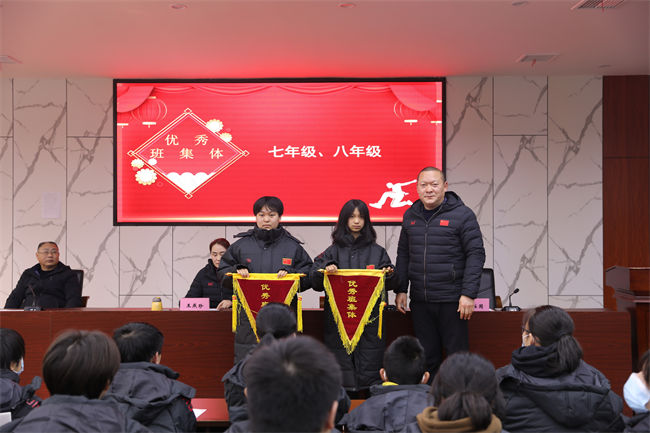 副校长张柱国为获得优秀班集体的年级颁奖