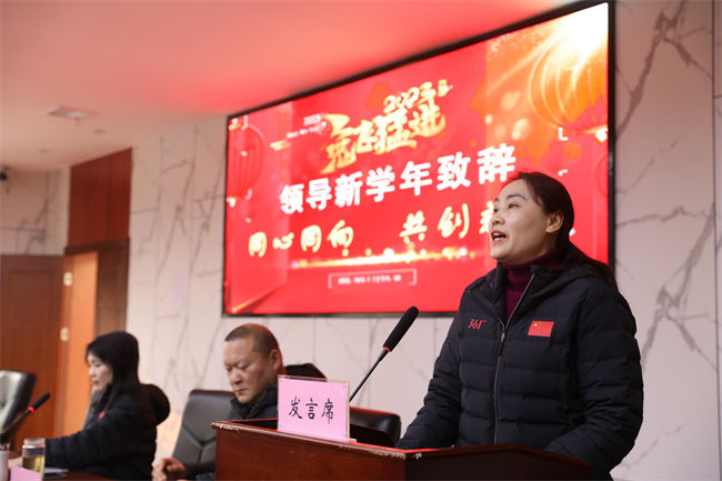 学校党总支书记、校长王燕珍最后致辞,向全校师生致以了新学期的问候,并对市体校在极不平凡的2022年里,决战省运、教学训练、行政管理、后勤建设等方面作了回顾,对2023年的工作进行了部署和展望。并表示成绩的取得离不开各级领导对学校工作的关心支持;离不开全校师生精诚团结、奋力拼搏的结果,并向一年来为学校振兴和发展做出突出贡献的全体师生表示最诚挚的谢意。她再次激励同学们志存高远,胸怀天下,勇于挑战,成长为国家体育事业的栋梁之材,在赛场上敢于“争”、“拼”、“抢”,树立顽强拼搏、永争第一的信念。她勉励教师们坚守教育初心,永葆教育热情,务实笃行,锐意进取,向高质量的教育、体育事业奋进。全体师生要同心同向、共克时艰、共创辉煌。