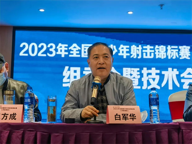 3月27日下午4点,2023年全国青少年射击锦标赛(步枪项目)组委会暨技术会议在汇豪国际酒店三楼多功能厅如期举行。出席会议的领导有国家体育总局射击射箭运动管理中心射击部部长白军华,湖北省体育局射击运动管理中心主任李冰,以及组委会相关领导和参赛代表队领队等。