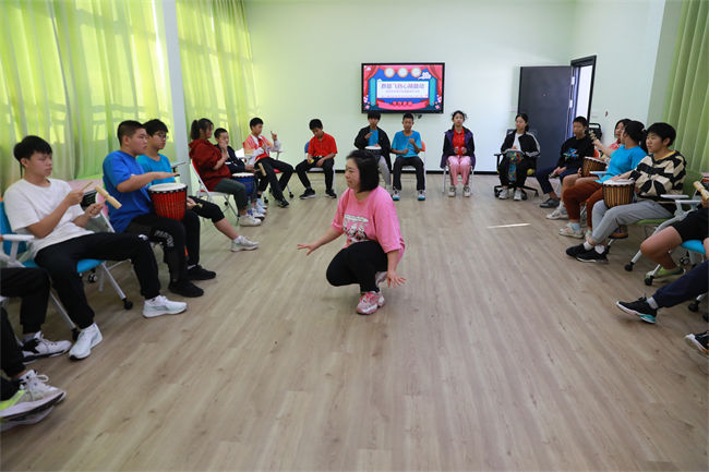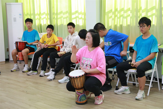 同学们跟随老师的指导,利用各种乐器享受创作音乐的快乐。有些平时较为调皮的同学在这次心理疏导中表现得很不错,沉浸在非洲手鼓、音叉、沙蛋带来的喜悦之中,活泼好动都转化为有旋律的合奏。
