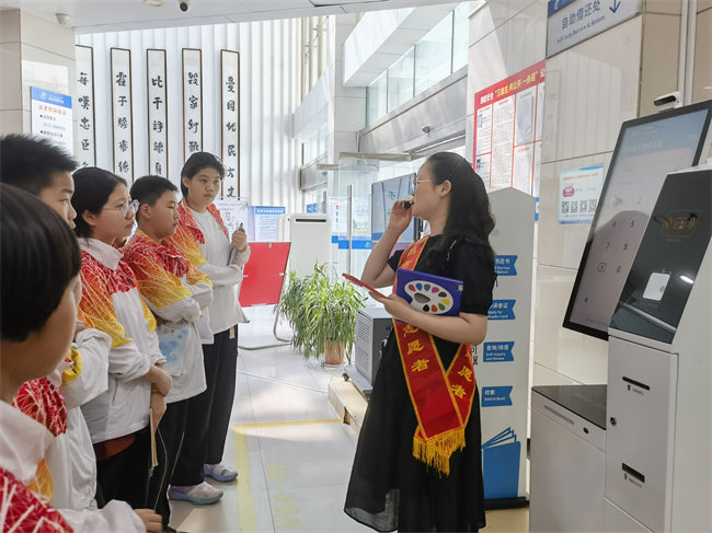 在图书馆少儿部主任余露雲的引导下,同学们参观了图书馆的各个区域,了解了图书馆的功能布局和服务内容。他们穿梭在图书馆的各个阅览展厅间,感受着书香气息,仿佛置身于一个知识的海洋。同学们或驻足细看书目,或轻声交流心得,每个人都被图书馆的宁静氛围和丰富的藏书深深吸引。