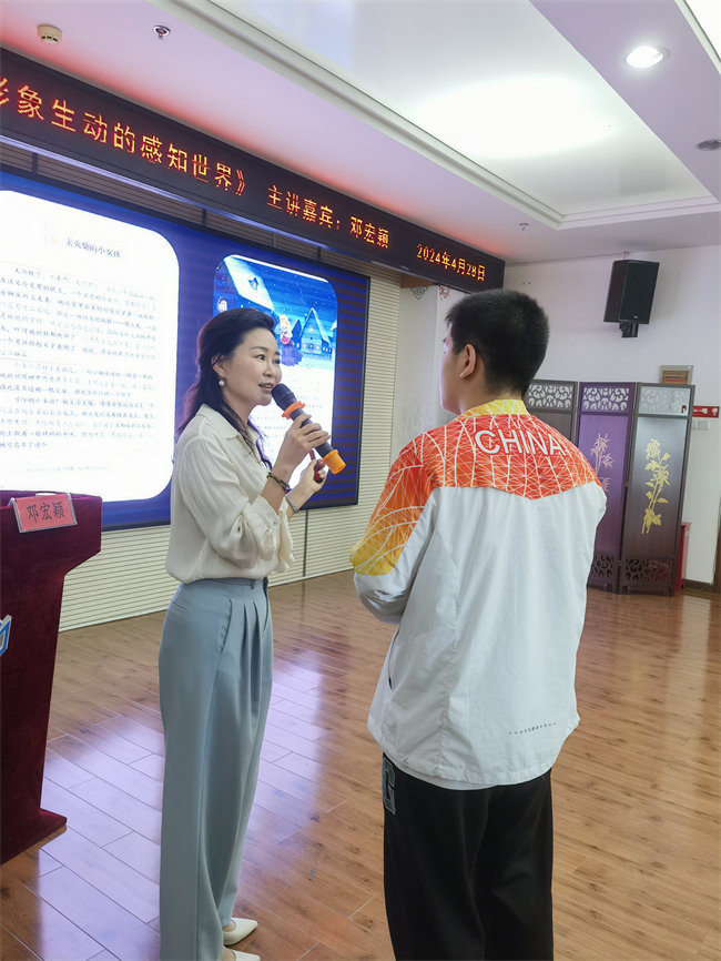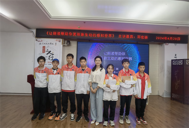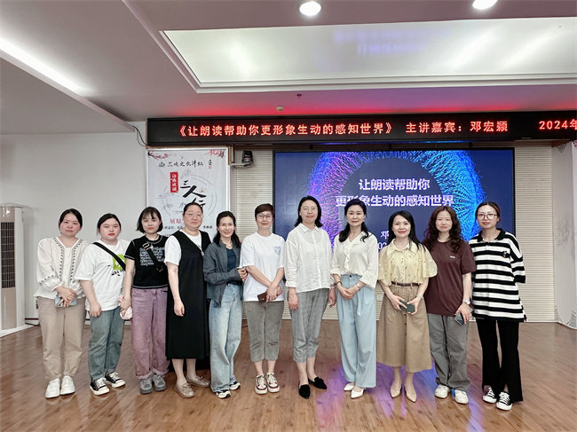参观完图书馆后,同学们来到五楼多媒体会议室,参加了一场精彩的朗诵启蒙指导课。湖北省优秀文艺志愿者、普通话测试员、朗诵艺术家协会理事邓宏颖老师,用她富有感染力的声音和生动的实例,为同学们讲述了《让朗读帮助你更形象生动的感知世界》,为同学们带来了一场关于朗诵的盛宴。