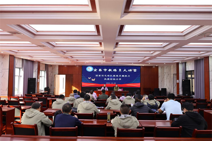 10月29日上午,宜昌市教练员大讲堂在市体校举行,本次大讲堂邀请了从市体校走出去的宜昌参加奥运会第一人,2008年奥运会羽毛球女双铜牌获得者,现役国家队羽毛球女双组教练魏轶力分享她在国家队执教的经验,市体校全体教练员参加。