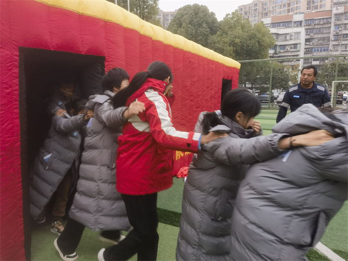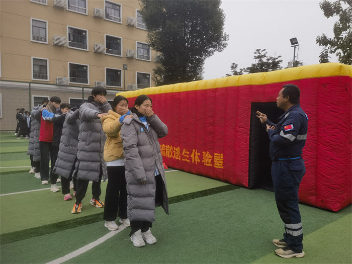 在培训老师王博的带领下,学生们走进了模拟的火灾现场,通过亲身体验,学习正确的火灾逃生路线选择与自我保护技巧。王博老师以其丰富的救援经历,生动讲解了火灾初期的自救互救方法,让同学们在紧张而有序的氛围中体验消防疏散,从中掌握宝贵的逃生技能,学会保护同伴,迅速撤离危险区域。