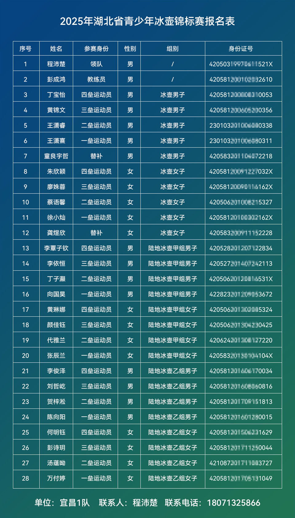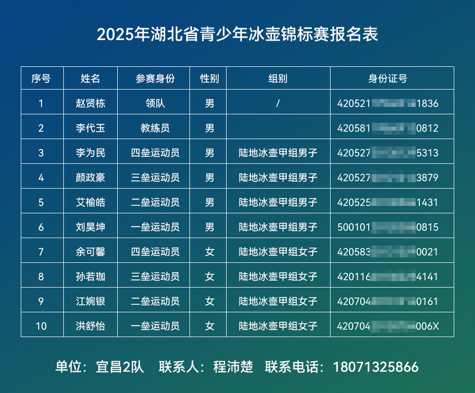 2025年湖北省青少年冰壶锦标赛运动员选拔名单公示