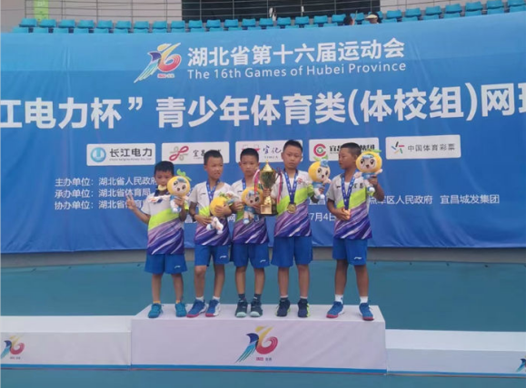 湖北省第十六届运动会少年类(体校组)网球比赛男、女子团体小组颁奖仪式在宜昌奥体中心举行。宜昌队U8-U10男子团体组冠军,这也为宜昌队摘得青少年体育类赛事首金。